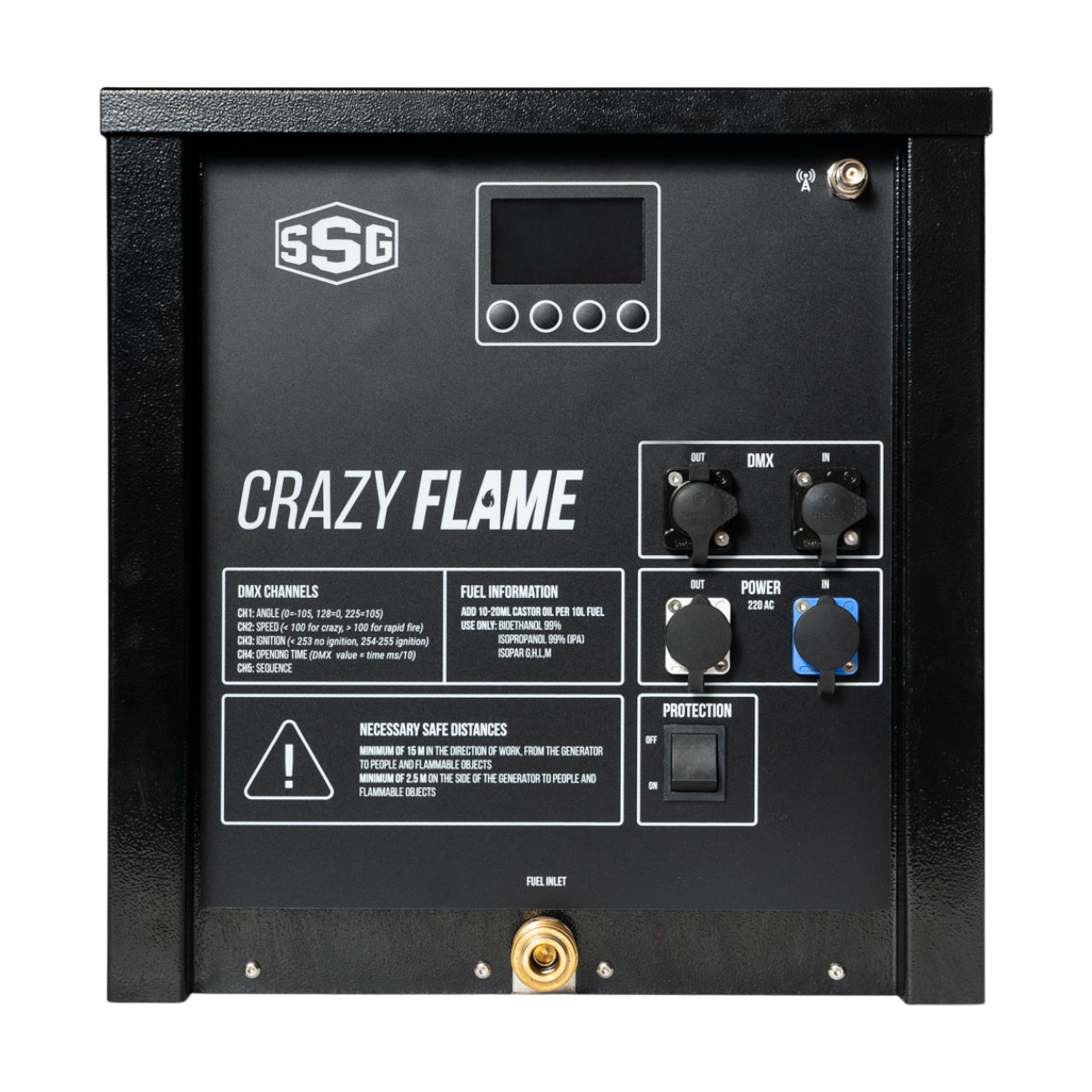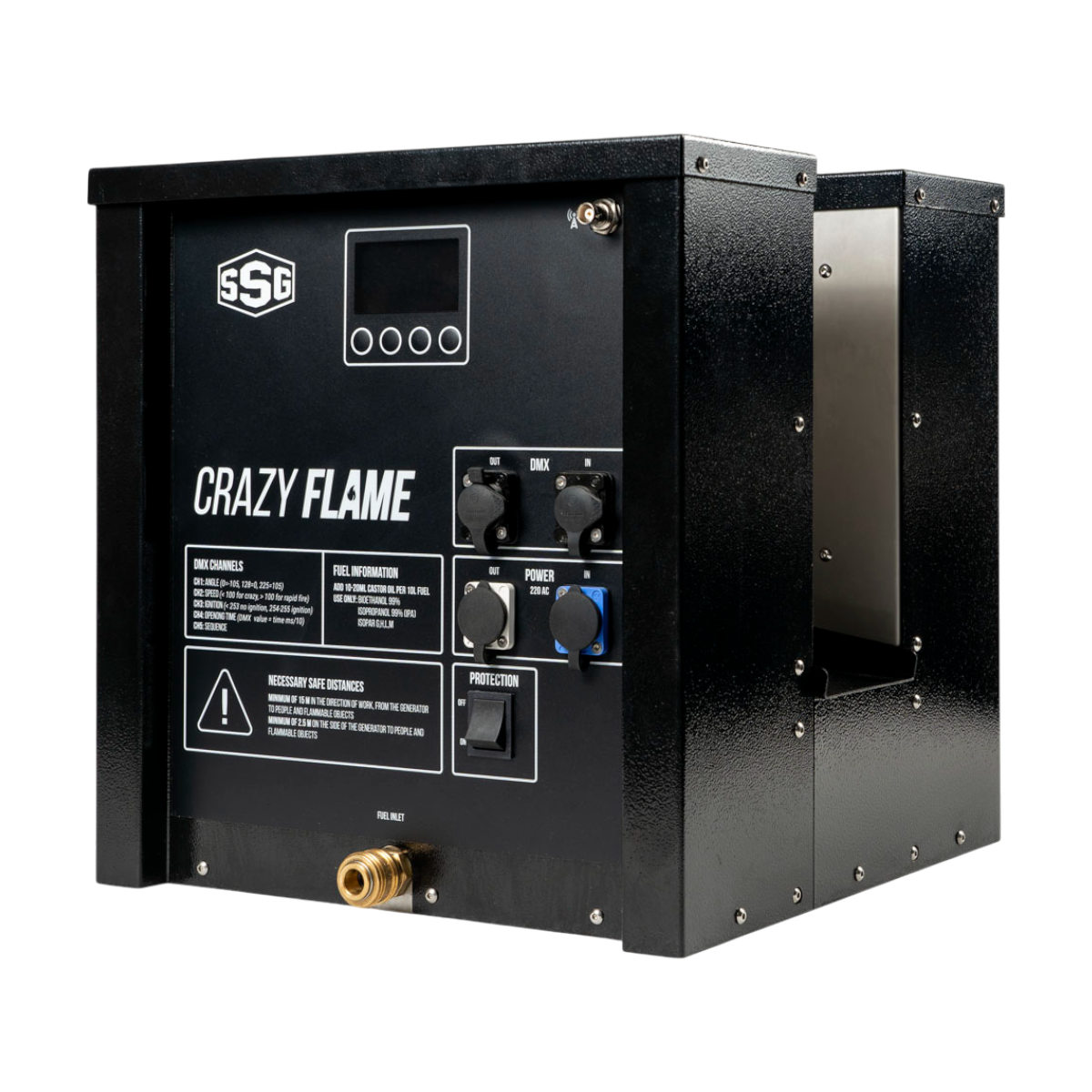 Генератор огня Crazy Flame это генератор огня на жидком топливе, с встроенной насосной станцией. Данный генератор представляет собой законченное устройство для создания эффекта пламени, высотой до 10 метров, а вращающийся выходной кулак позволяет создавать немысленные огненные картины на углах до 210 градусов. Генераторы огня Crazy Flame создают самые зрелищные спецэффекты, подчеркивая кульминационные моменты шоу и привлекая повышенное внимание зрителей. В сочетании с другими машинами для создания спецэффектов, генераторы огня доставят настоящие наслаждение публике от созерцания потрясающего шоу вживую!