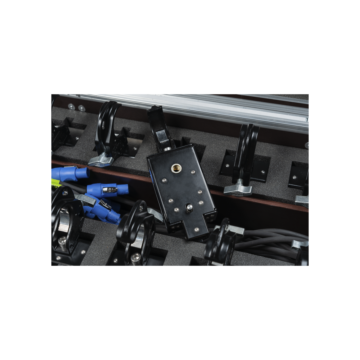 Устройство срабатывает при подаче электропитания и рассчитано на вес до 20 кг, при этом в случае сбоев в подаче электричества система надежно удерживает занавес, не позволяя ему упасть в неподходящий момент. Для присоединения к сети 220V используется кабель Powercon. Имеется возможность последовательного соединения нескольких устройств для создания более сложных эффектов. Подтвержденная влагозащита IP54 надежно предохраняет внутренние механизмы от попадания влаги. Система сброса занавеса крепится к подъемной балке («ферме») любого диаметра благодаря возможности простой замены струбцины. Устройство состоит из 10 элементов, к которым при необходимости можно добавить новые.